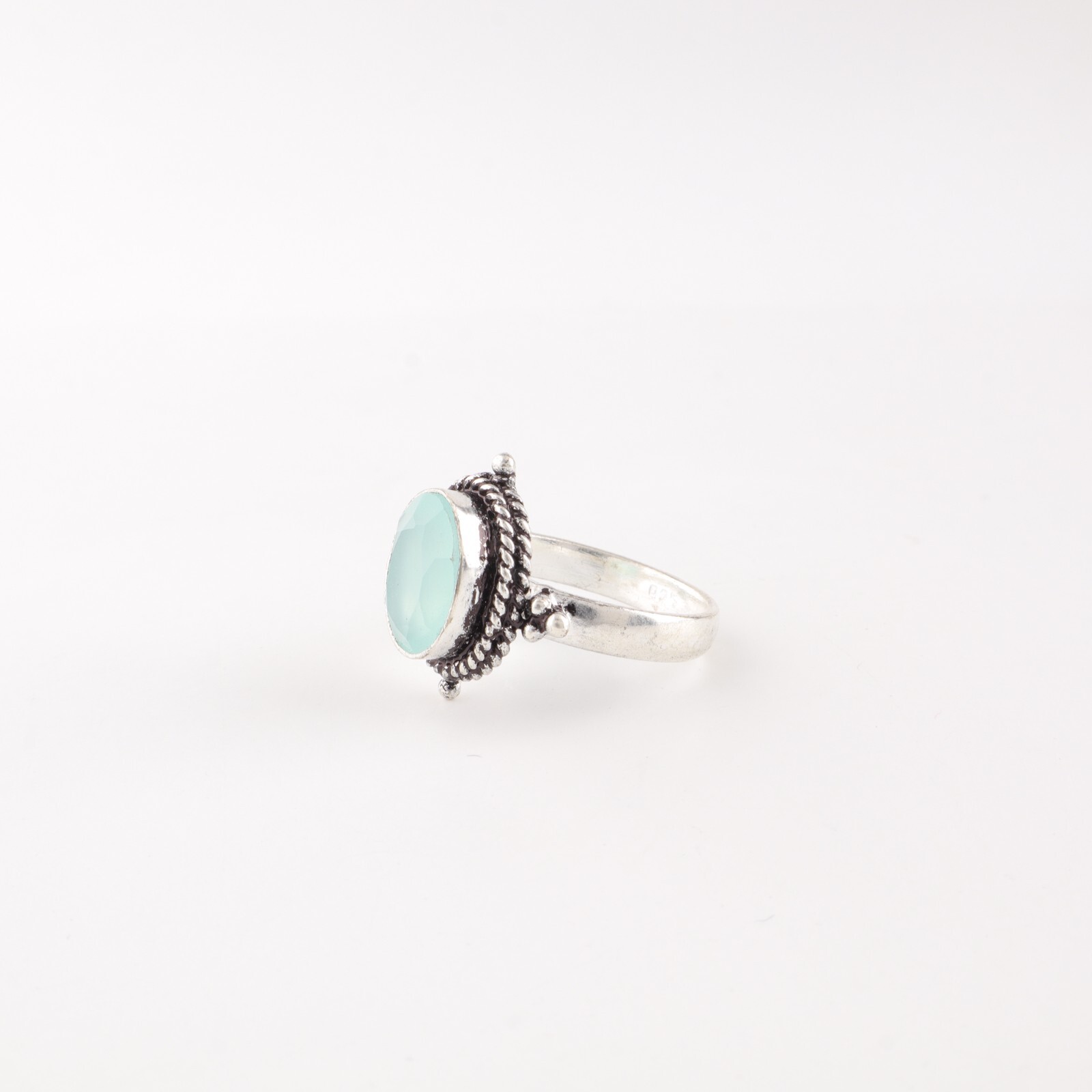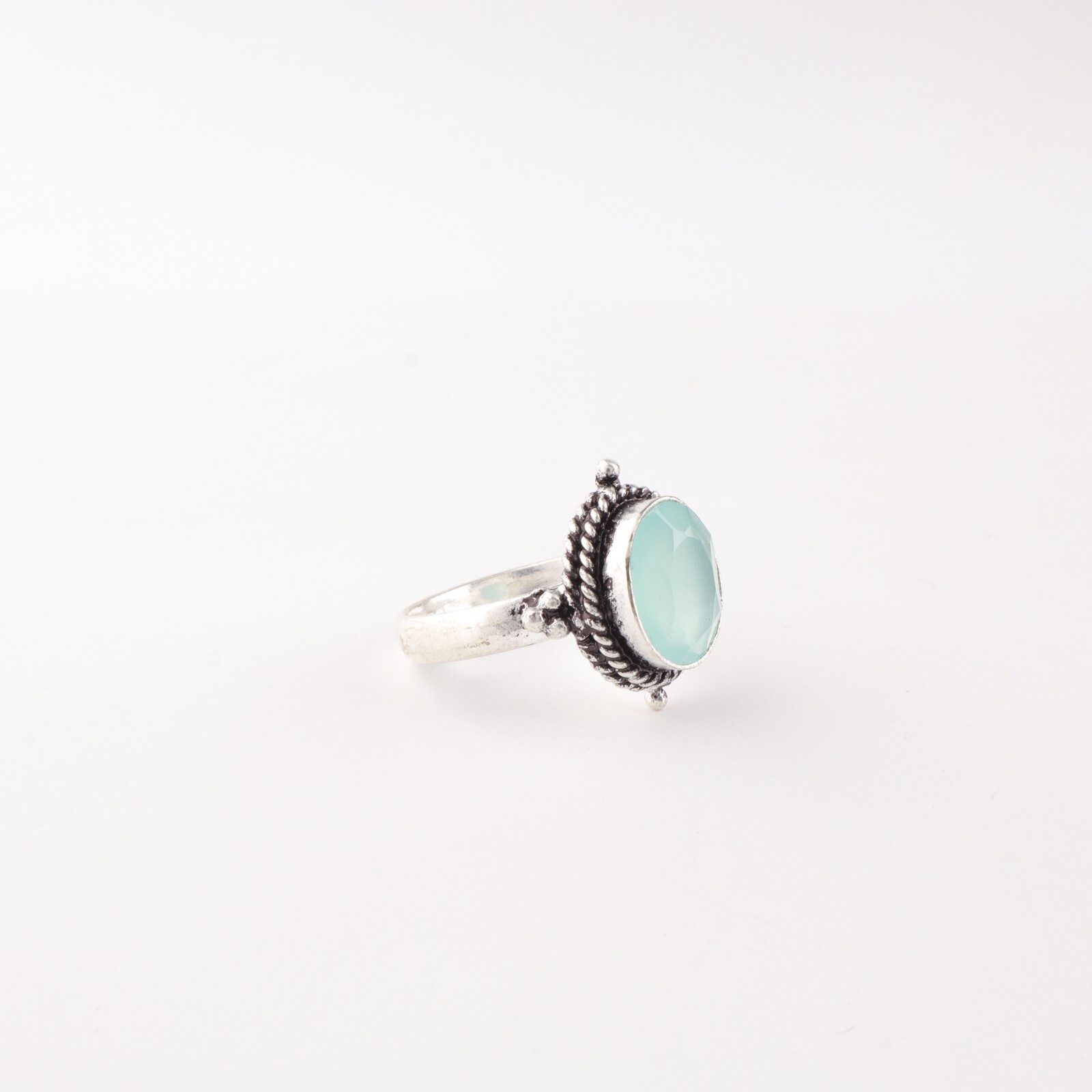 Aqua Chalcedony Gemstone 925 Fine Silver Jewelry Handmade March Birthstone Ring