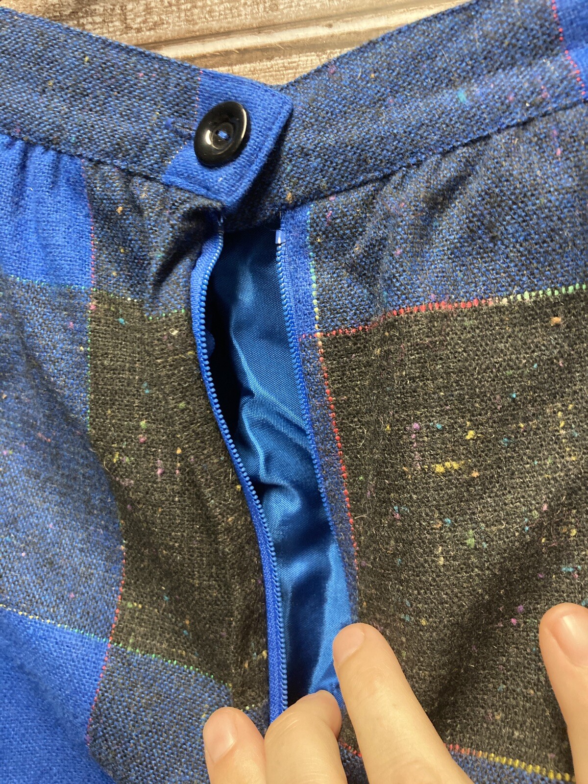 как выглядит Vtg City Girl Midi Wool Blue Black Plaid Skirt Sz M Academia USA School Girl фото