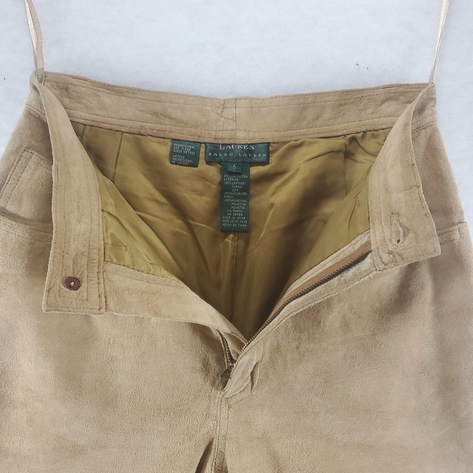 sz 6 28x30 Lauren Ralph Lauren Suede Pants Leather Tan Camel Preppy Equestrian