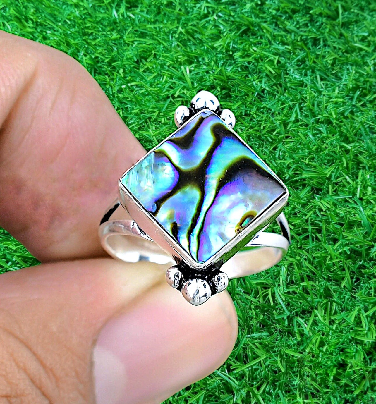 как выглядит Abalone Shell Gemstone Handmade Ring 925 Sterling Silver Ring Women