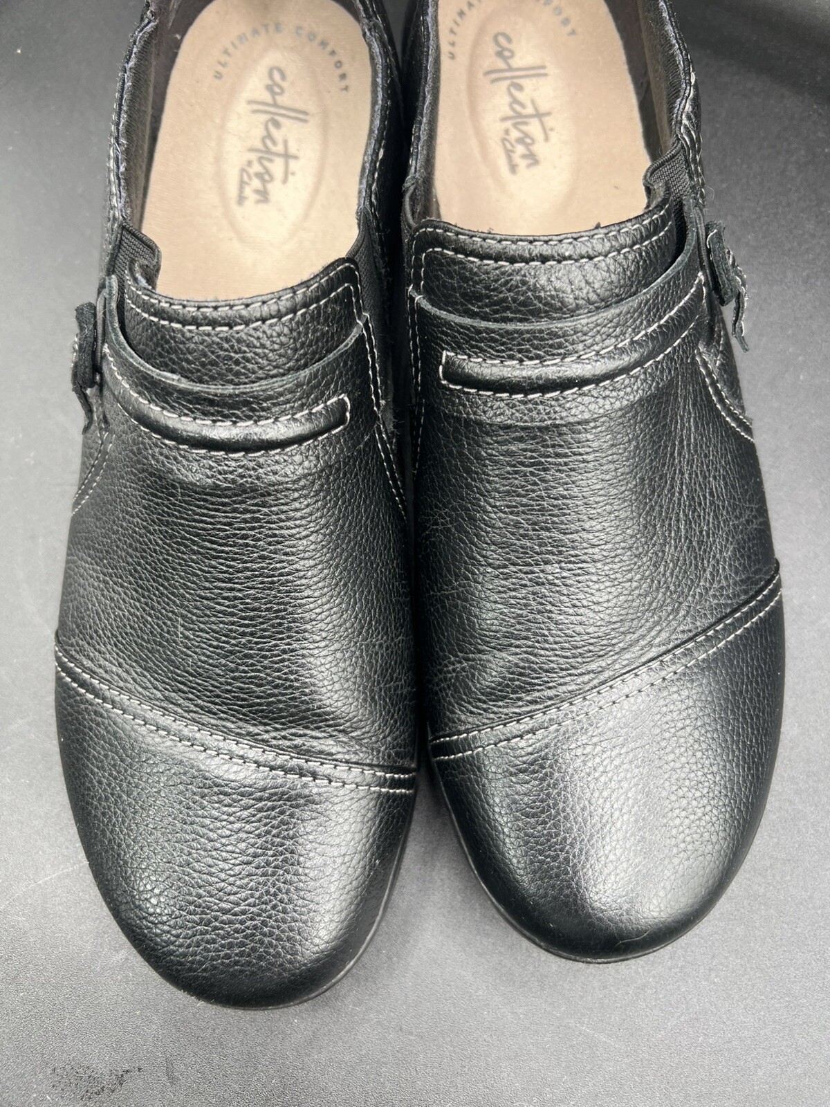 как выглядит Clarks Womens Cheyn Madi Slip On Comfort Loafer Black Leather Shoes Size 8 M фото