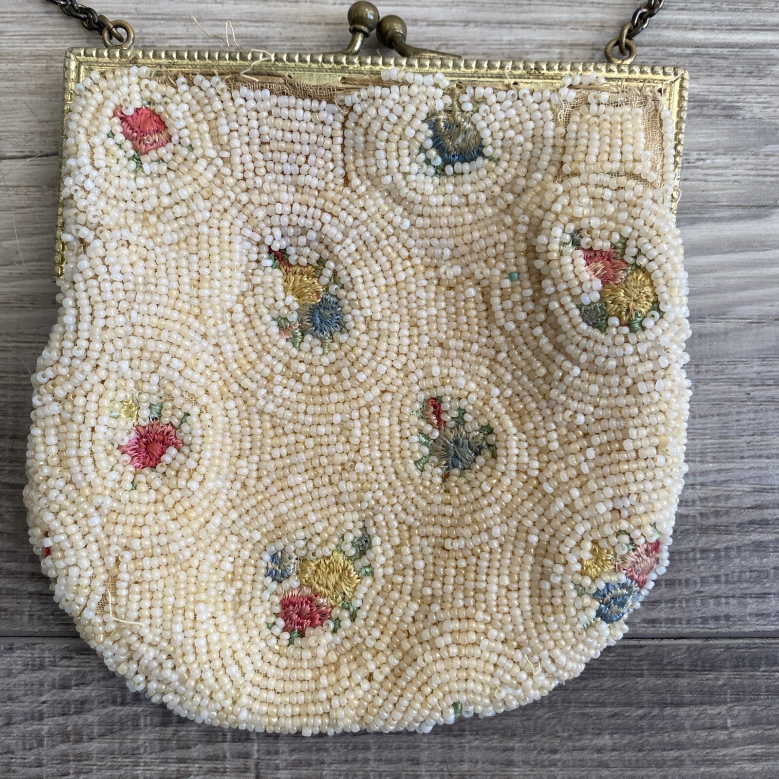 K G Charlet Paris Smal Vintage Beaded Floral Purse Bag Handbag