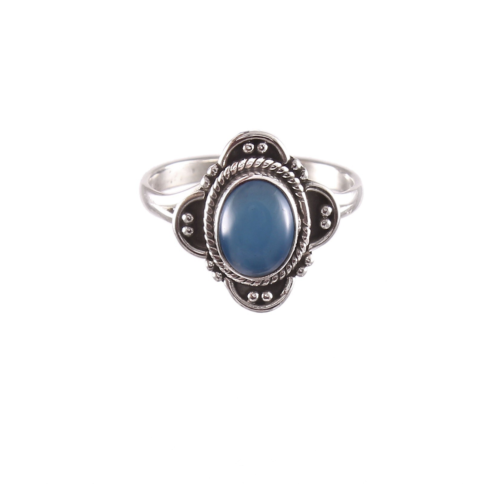 925 Sterling Silver Oxidized Blue Chalcedony Ring Handmade Jewelry Gift For Her