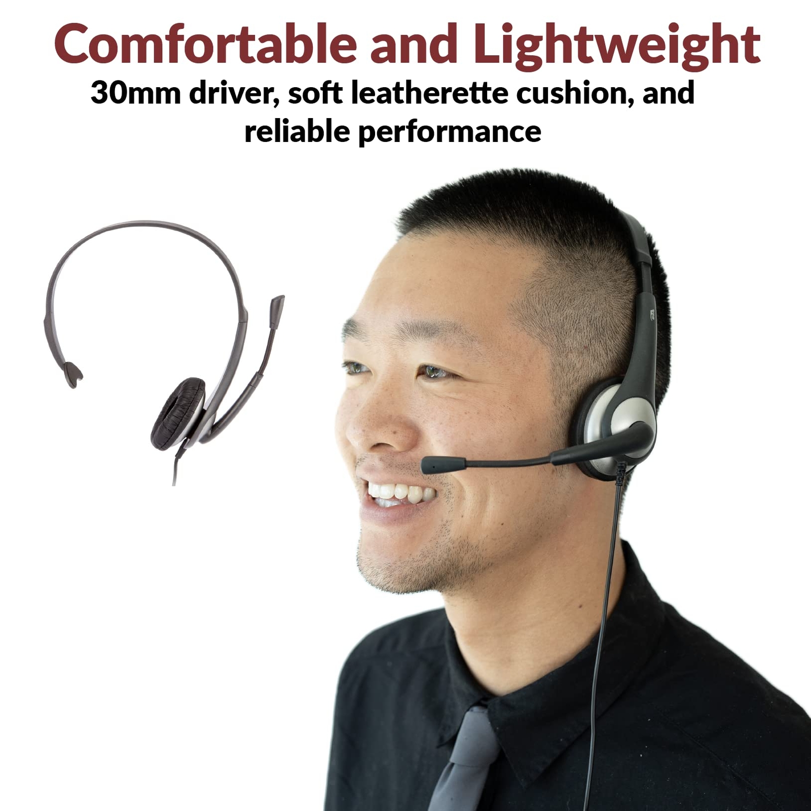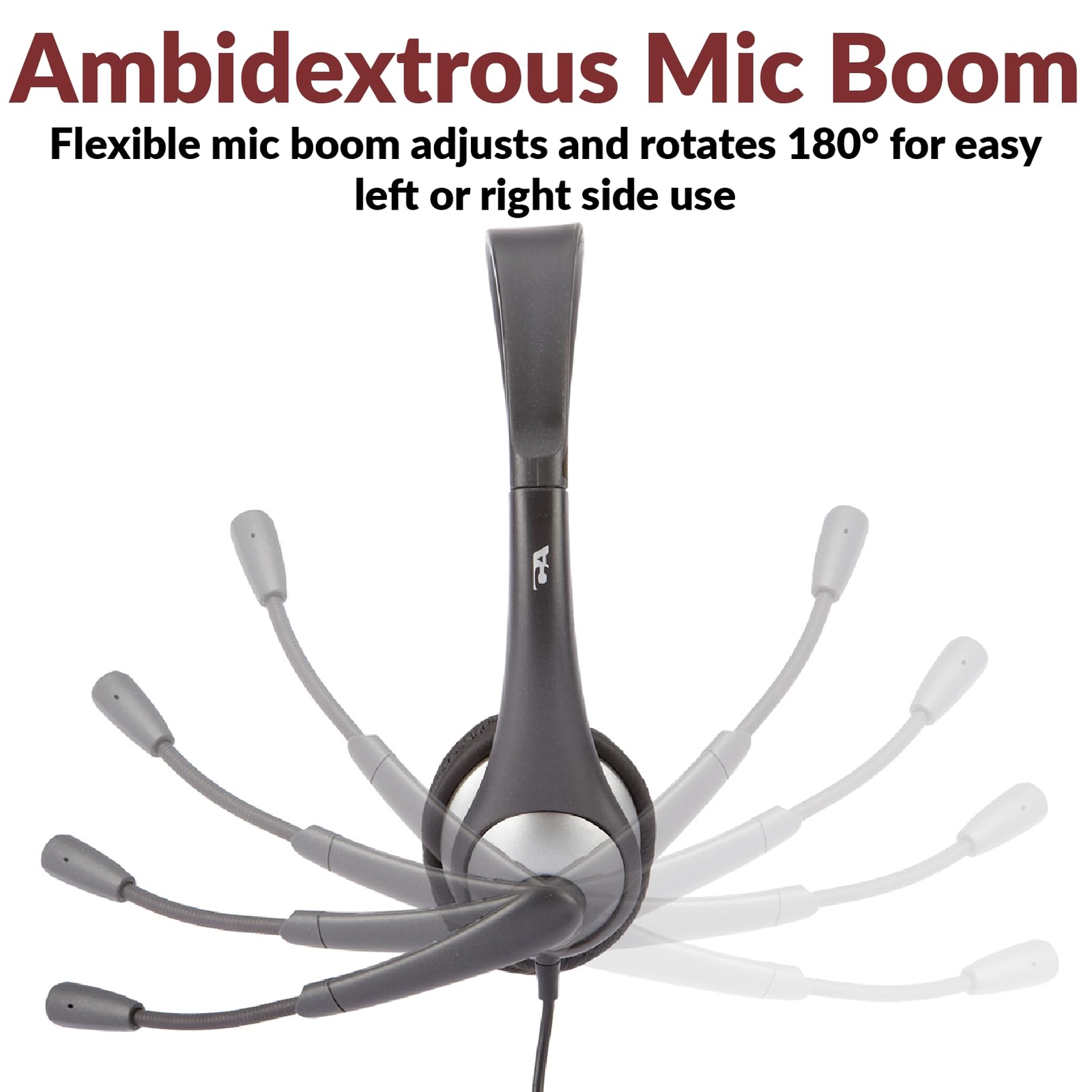 Cyber Acoustics AC 104 Mono Headset Gray 3.5mm Classroom Headphones with Mic