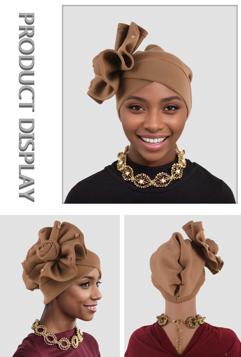 African Auto Gele Headtie Nigerian Women Flower Hat Turban Hijab Bonnet Cap Wrap