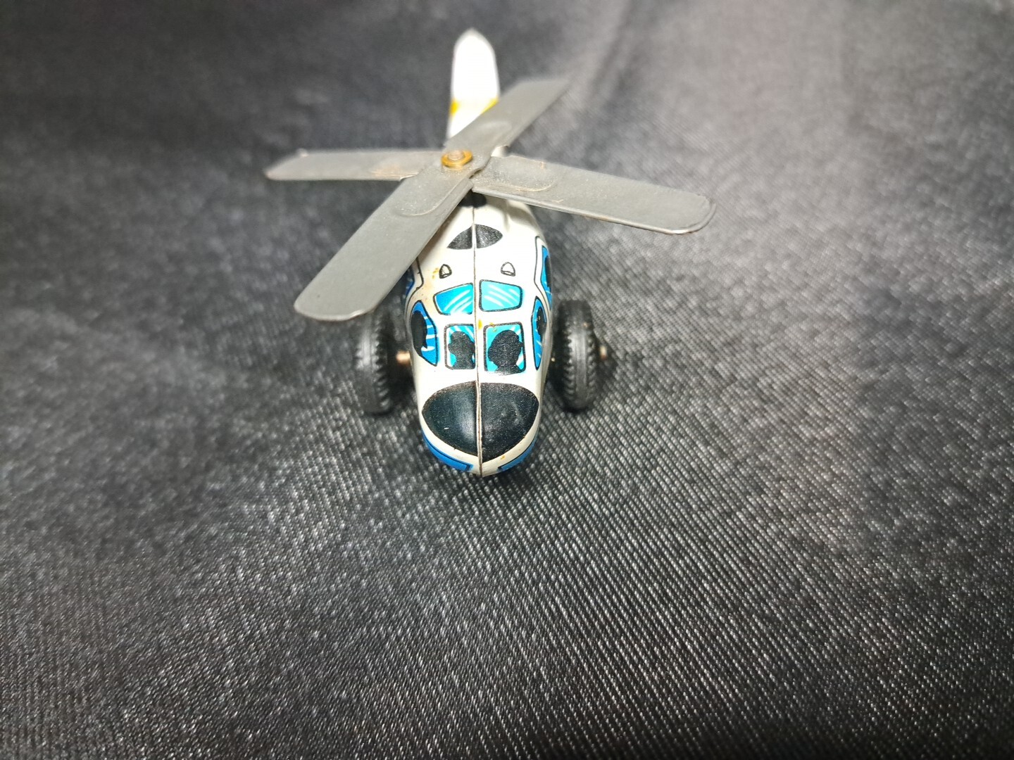 Vintage Tin Friction Toy Police Patrol Bell Helicopter 3.5 Works Made in Japan