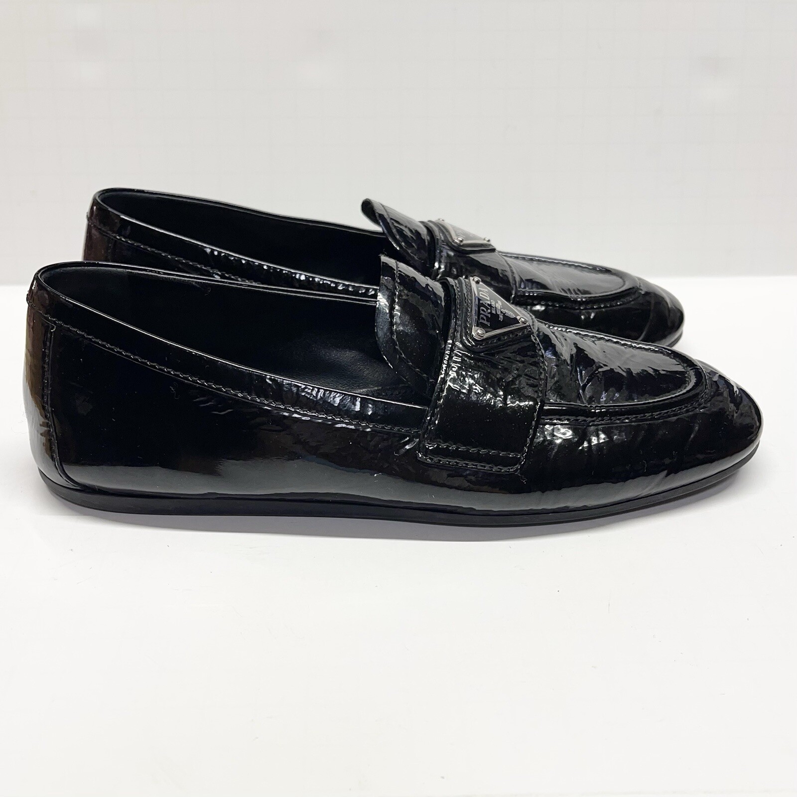 как выглядит Prada Patent Leather Loafers Black Women s Size 37 фото