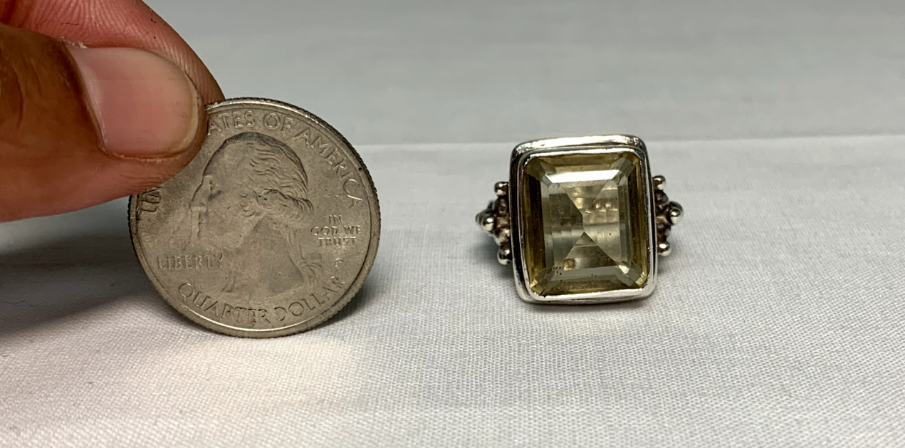 Vintage MD Sterling Silver 925 Yellow Topaz Statement Ring Size 7.75