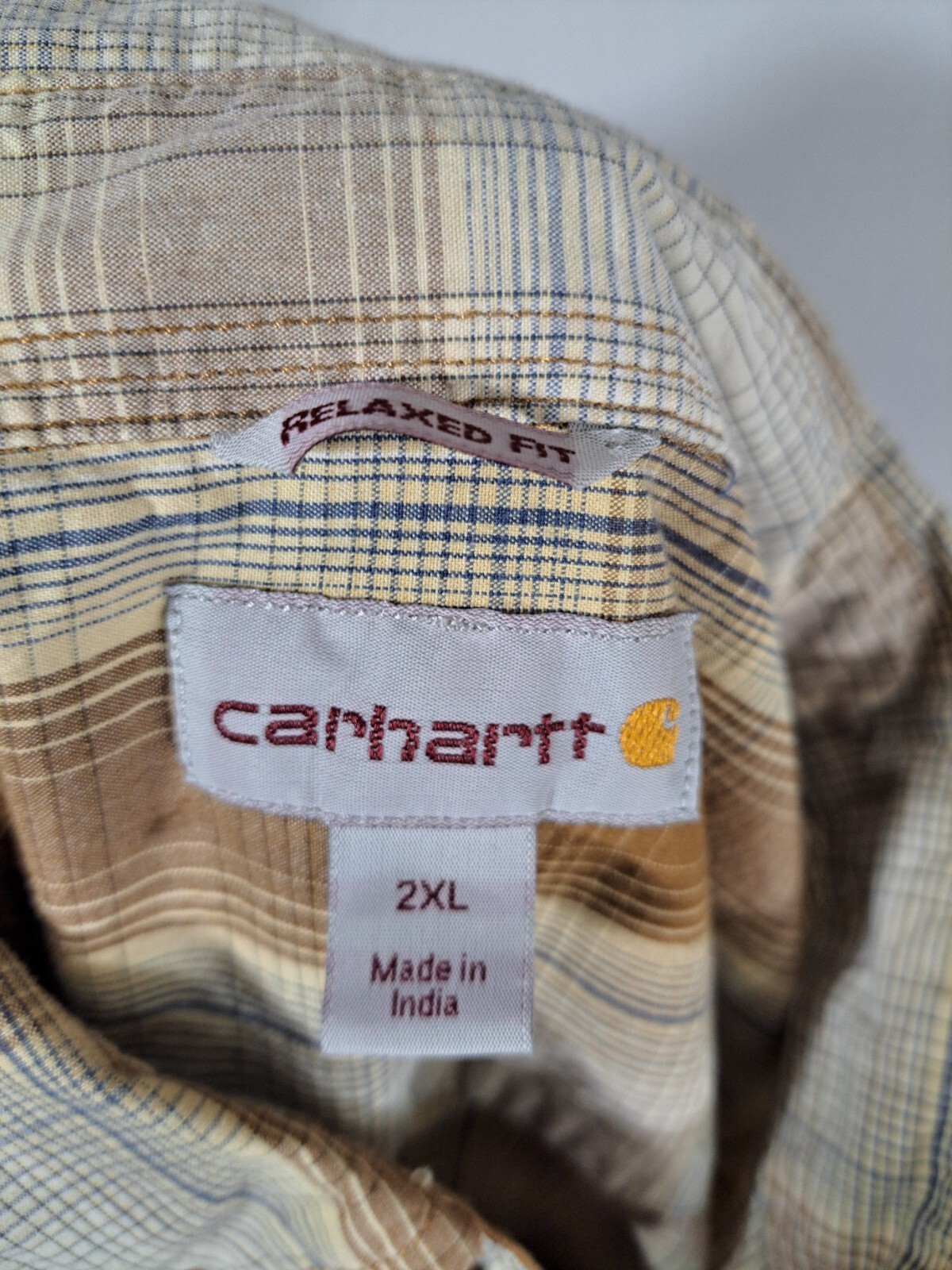 Carhartt Relaxed Fit Tan Plaid Short Sleeve Button Up Pockets Mens Size 2XL