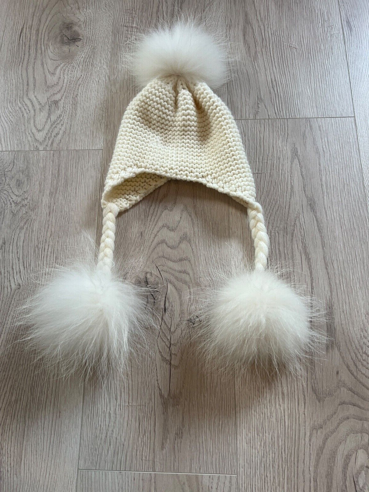 как выглядит Winter Kids Beanie Children Earflap Cap Wool Hat Natural Real Fur Pom Pom 2-5T фото