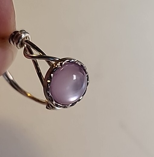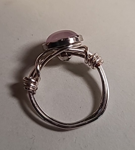 NEW Handmade Wire Wrapped Ring Silvertone Statement Pink Beaded Size 6
