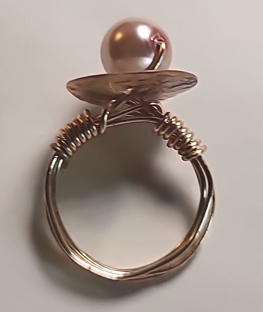 как выглядит NEW Handmade Wire Wrapped Ring Goldtone Pink Colored Beaded Size 8 фото