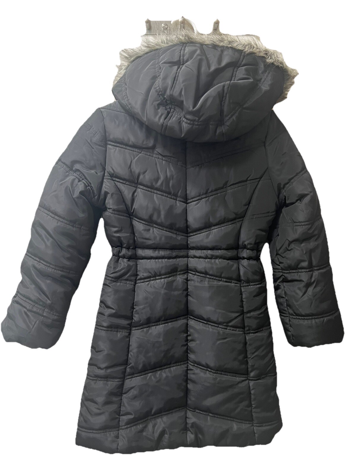 Calvin Klein Girls Black Hooded Long Puffer Jacket Faux Fur Trim Sz 8/10 Medium