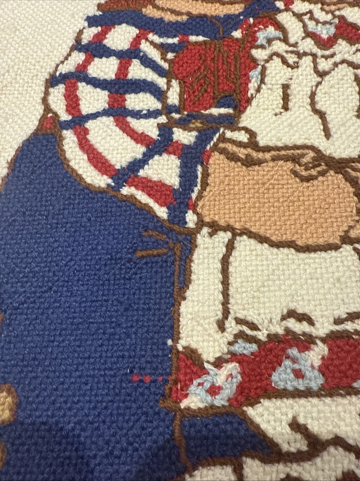 Vintage Unframed Needlepoint Raggedy Ann Andy 20 X 13 MCM