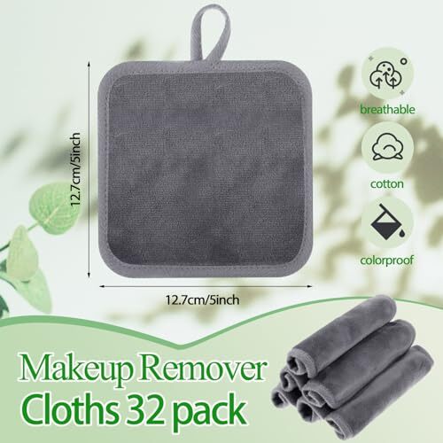 32 Pcs Makeup Remover Pads 5 x 5 Inch Soft Reusable Makeup Remover Cloths for