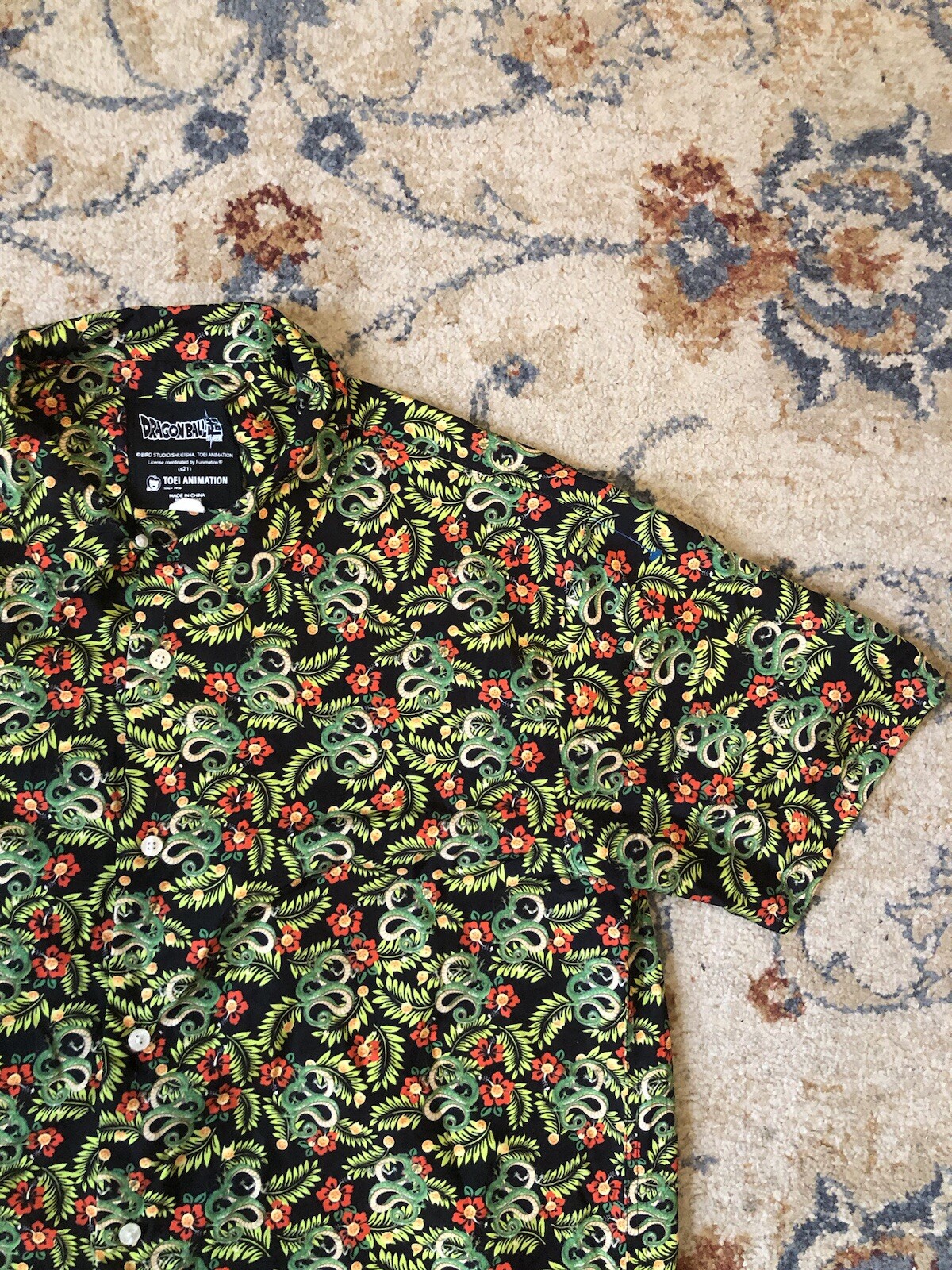 Dragonball Z Super Hawaiian Shirt Men's M Dragon Floral Toei Animation Anime