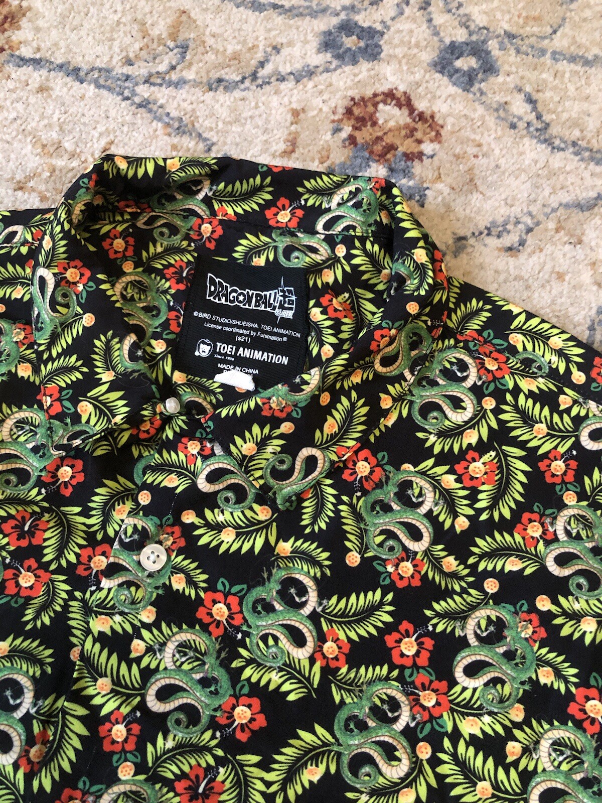 как выглядит Dragonball Z Super Hawaiian Shirt Mens M Dragon Floral Toei Animation Anime фото