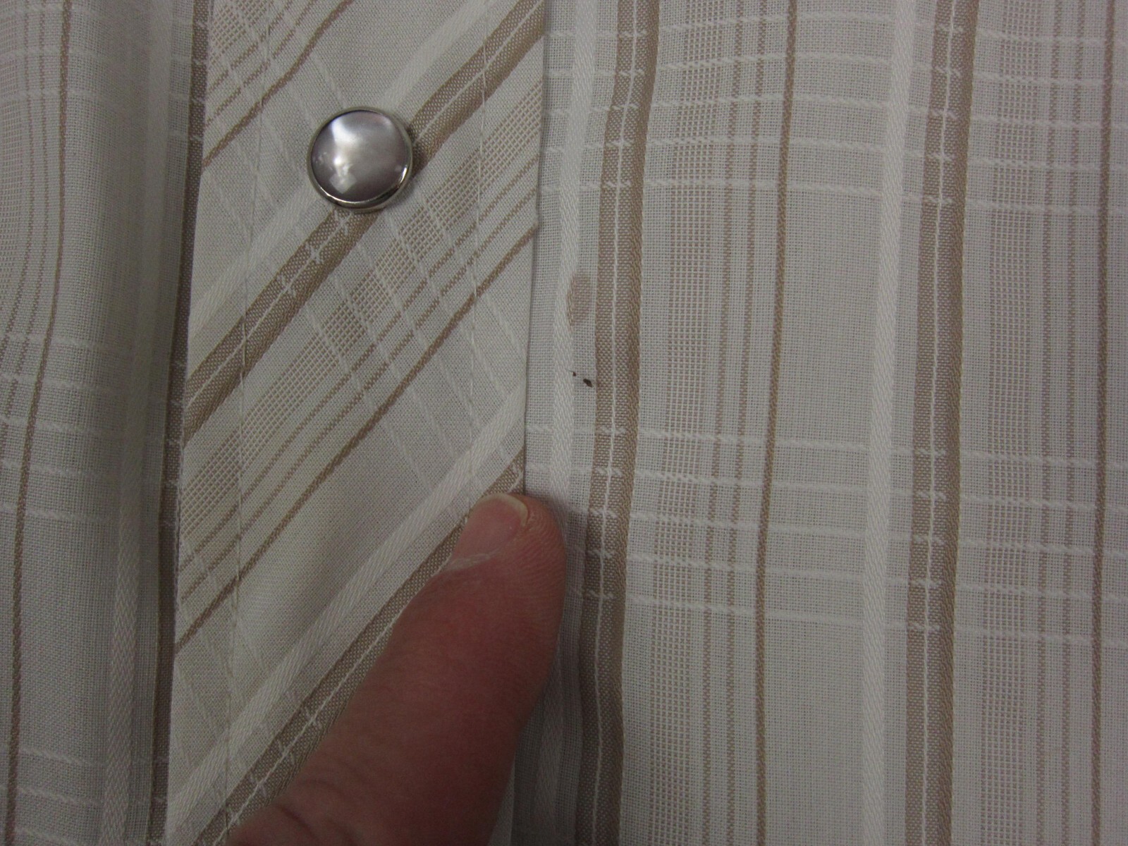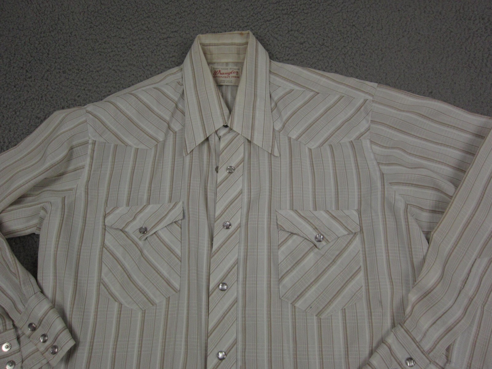True Vintage Wrangler Shirt Mens 16.5 Large White Brown 60s 70s Colorful Snap