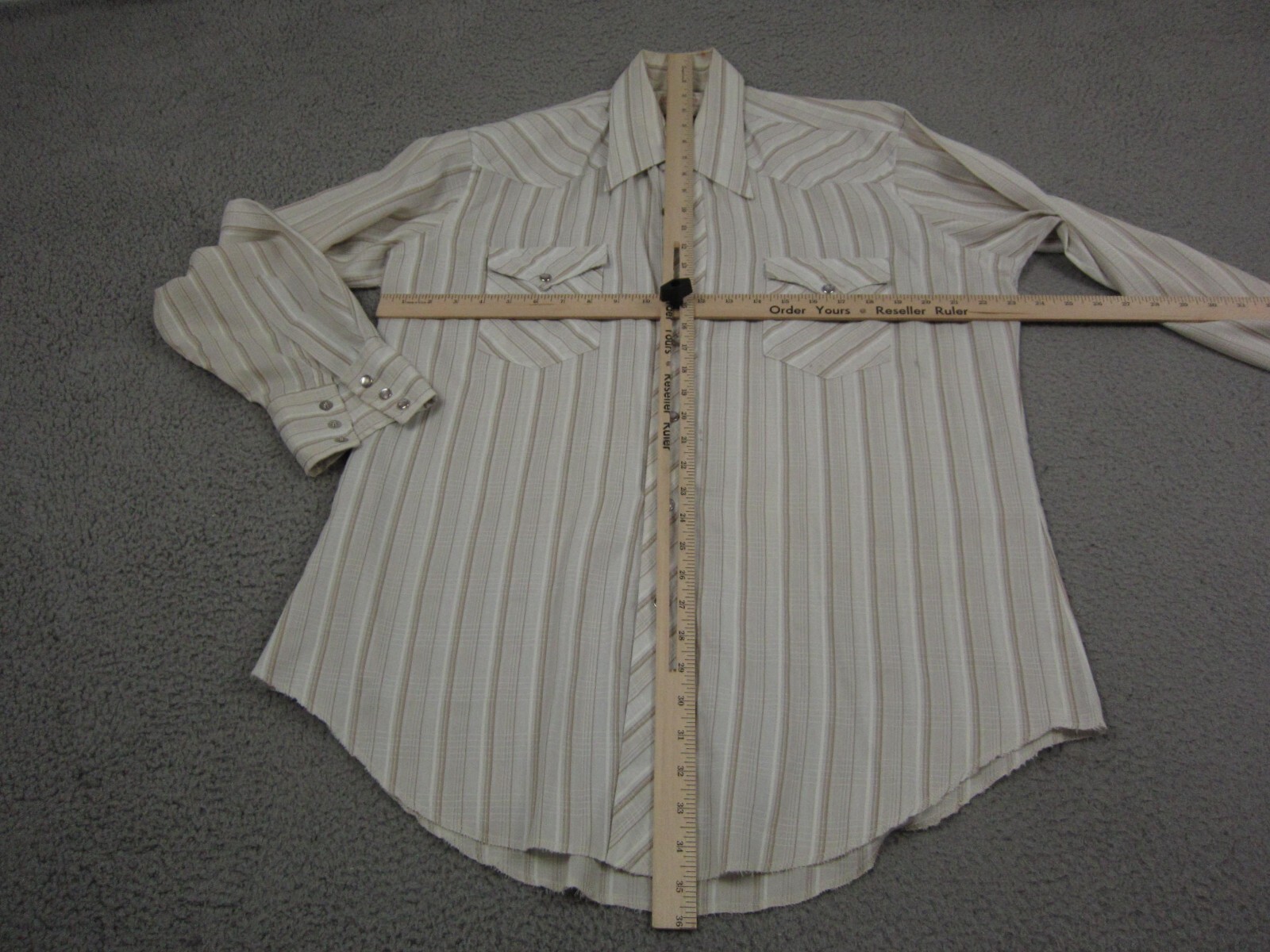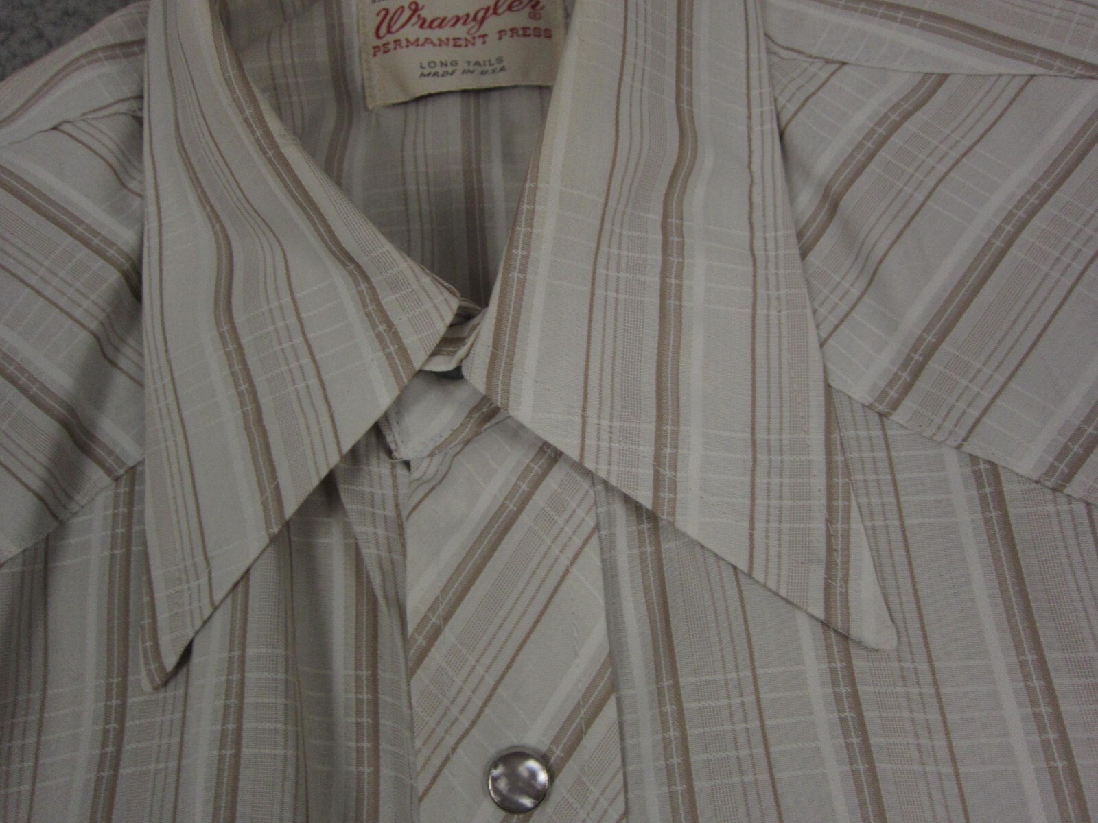 как выглядит True Vintage Wrangler Shirt Mens 16.5 Large White Brown 60s 70s Colorful Snap фото