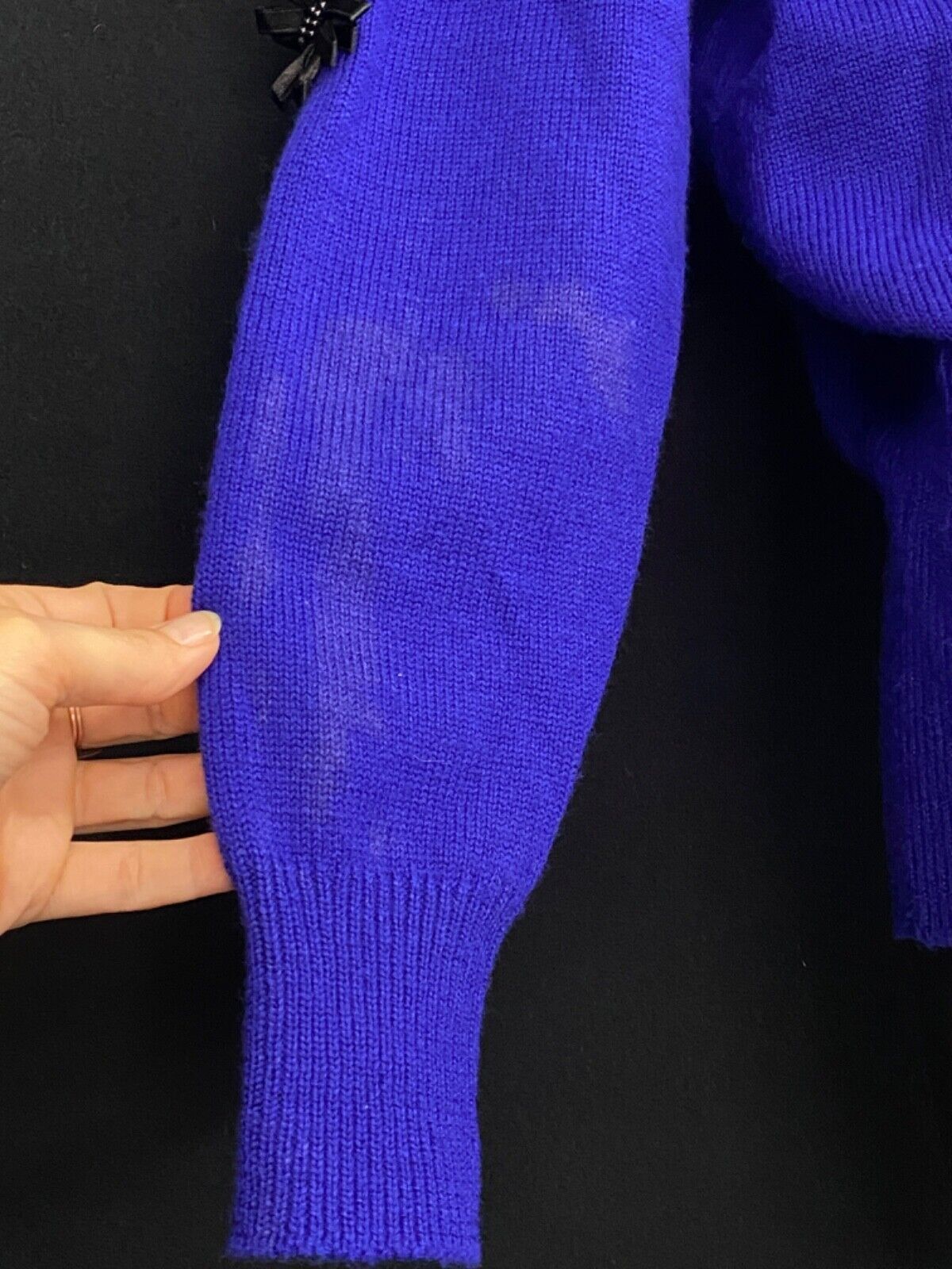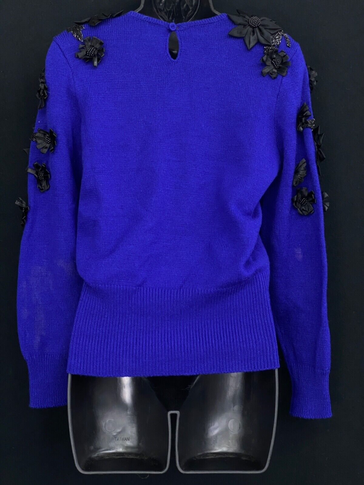 как выглядит Vintage blue embellished sweater, black floral beaded knit 1980s wool appliqu S фото