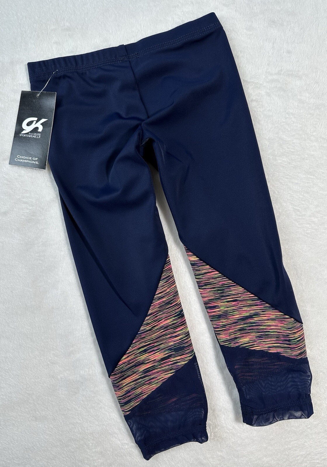 New GK Elite LEGGINGS Gymnastics BLUE Leotard PANTS Capri Tights SPANDEX Size CL
