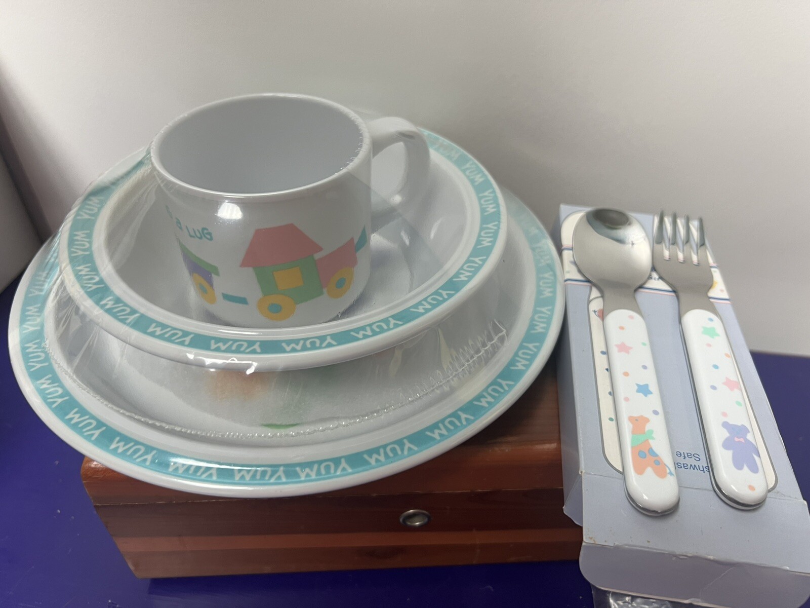 VTG Hallmark Baby s First Serving Set Bowl Plate Cup Melamine NOS 5 Piece Set