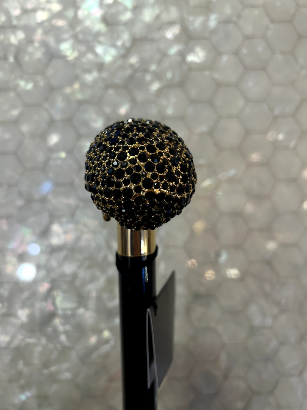 Italian Luxury gold skull head with black crystals walking cane 36-inch