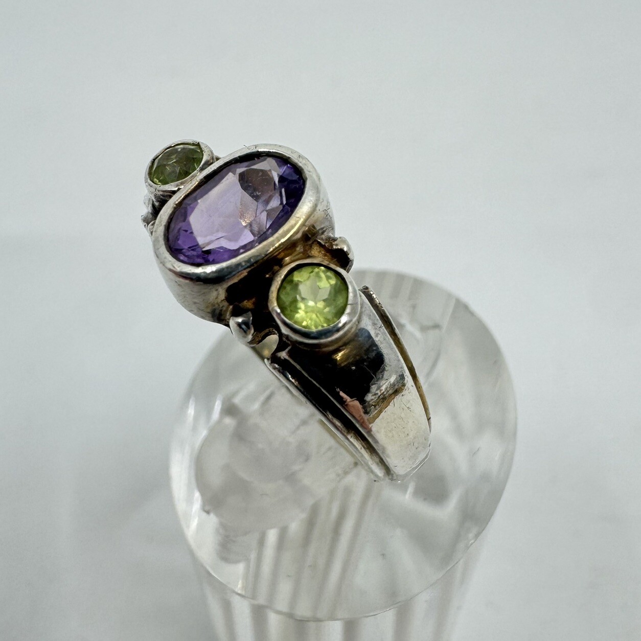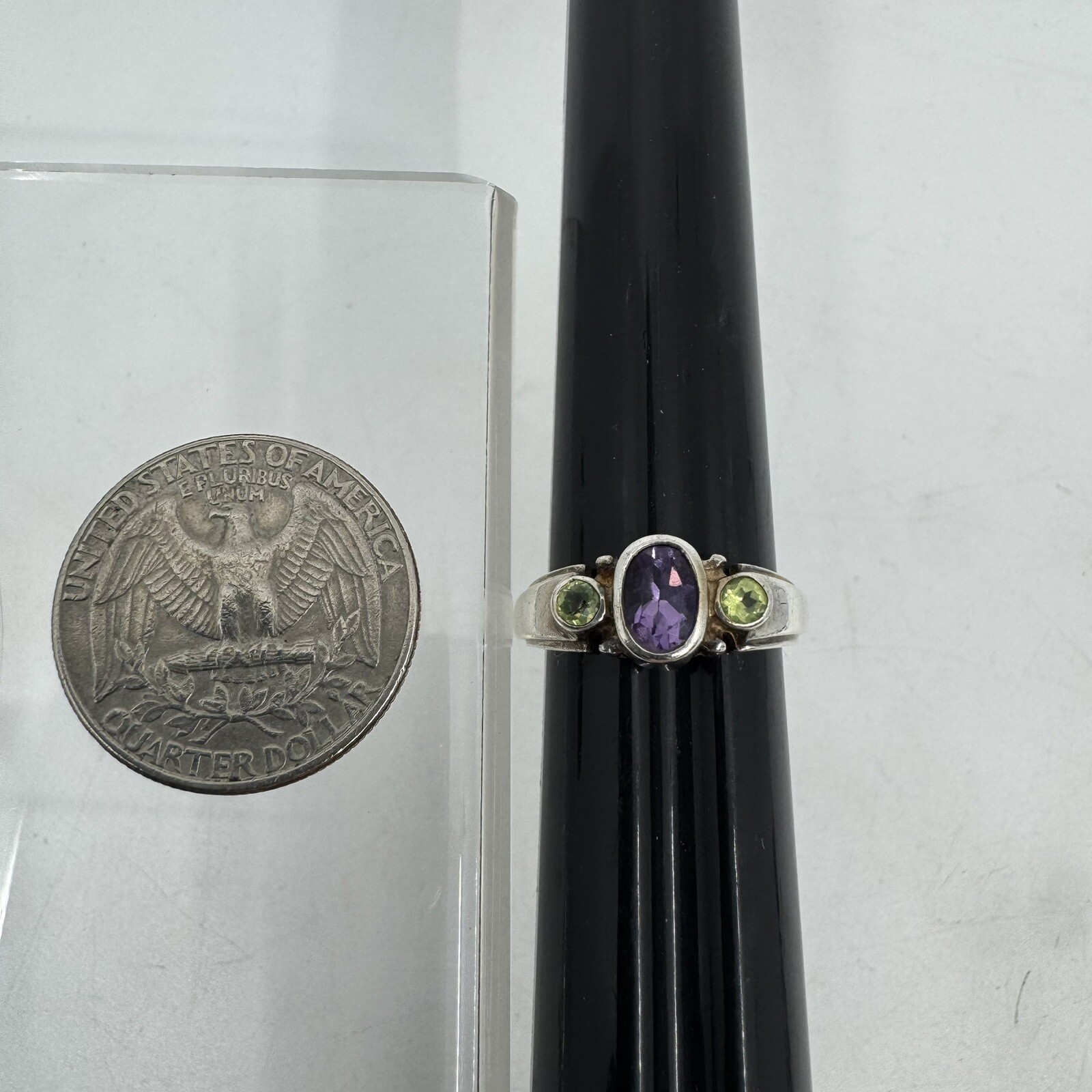 Oval Purple Amethyst Peridot Green Stones Size 7.25 Sterling Silver 925 Ring