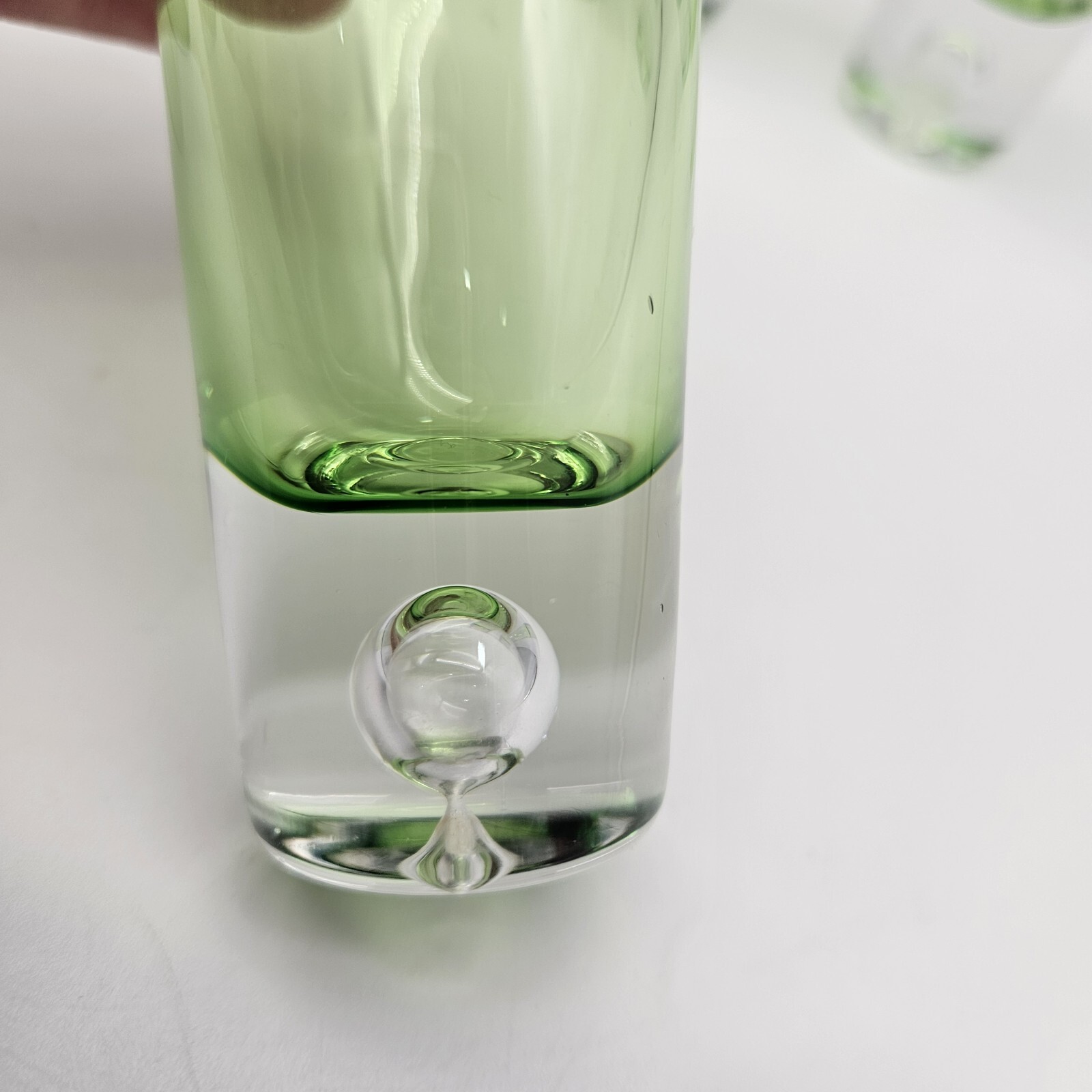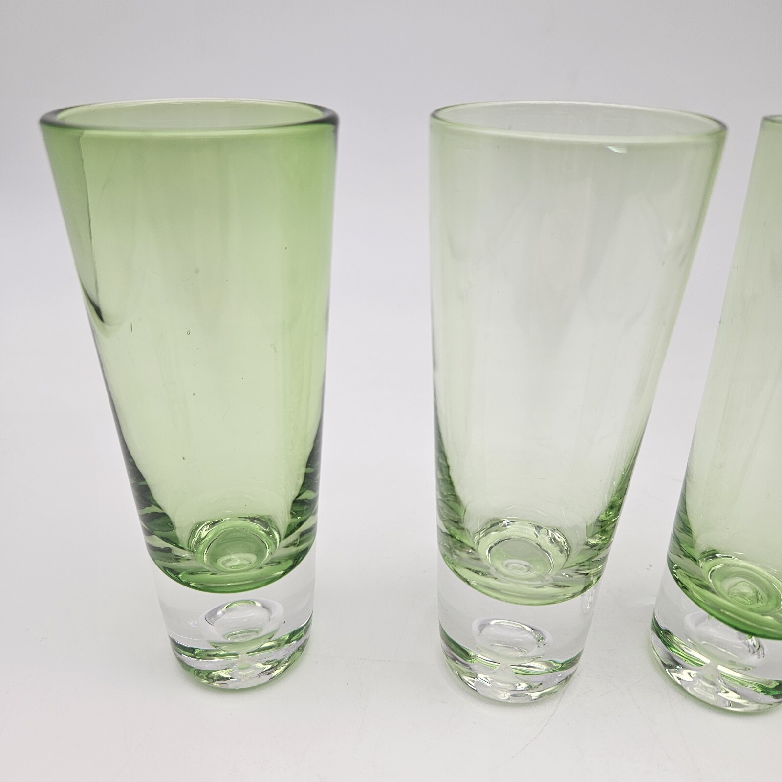 как выглядит Set of 4 Vintage MCM Green Glass Bubble Base Double Shot Glasses Hand Made фото