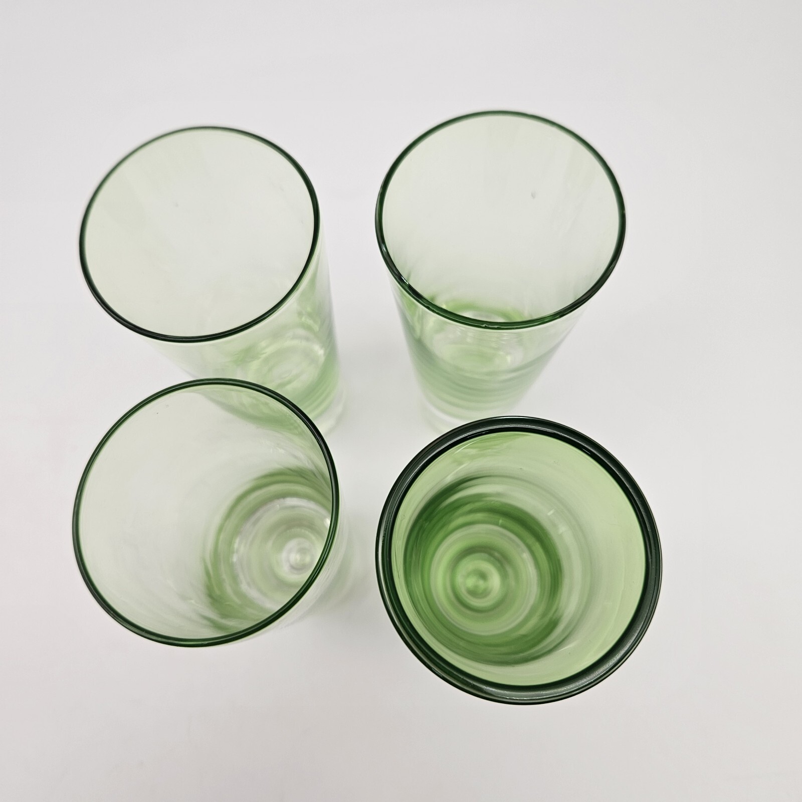 • Set of 4 Vintage MCM Green Glass Bubble Base Double Shot Glasses Hand Made
