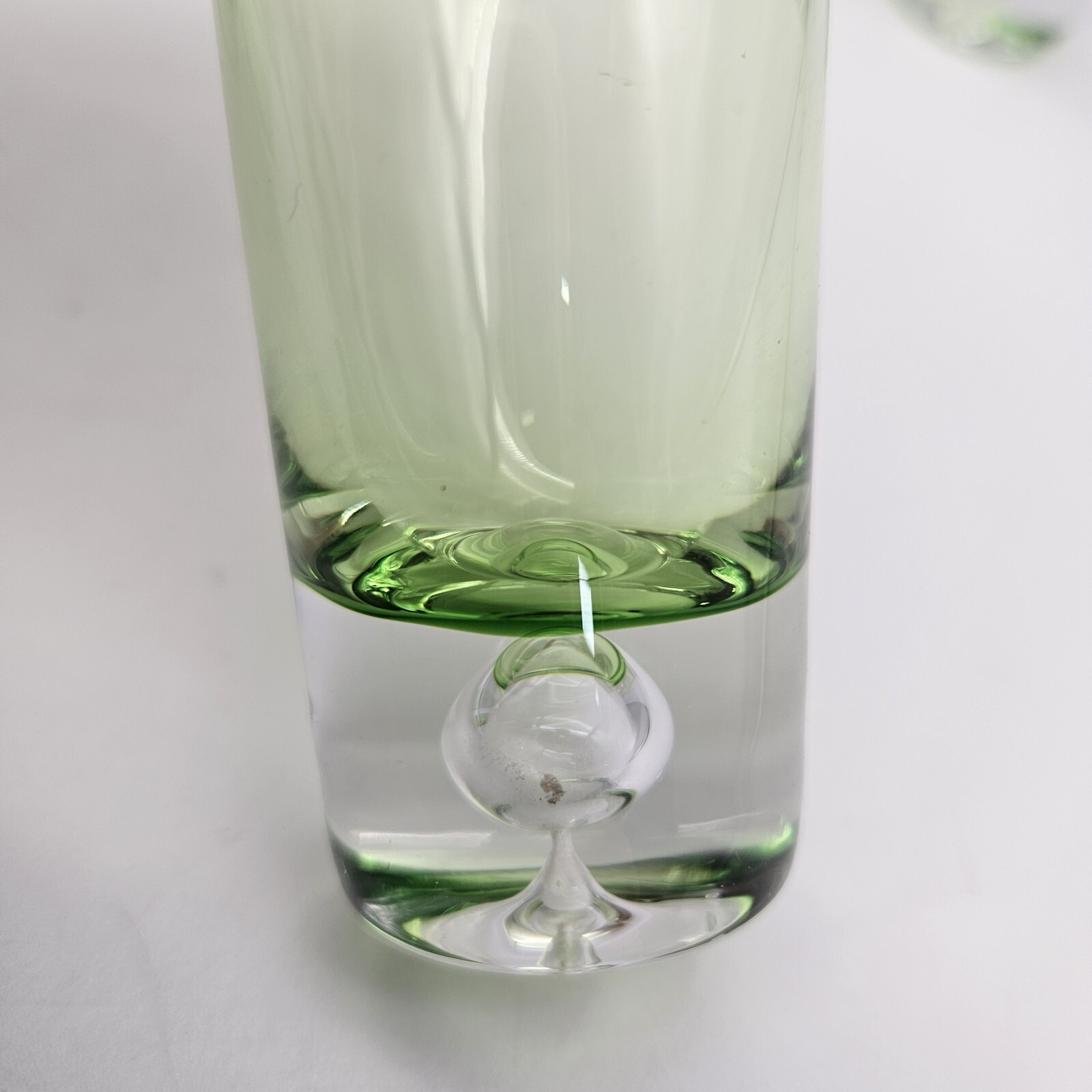 Set of 4 Vintage MCM Green Glass Bubble Base Double Shot Glasses Hand Made