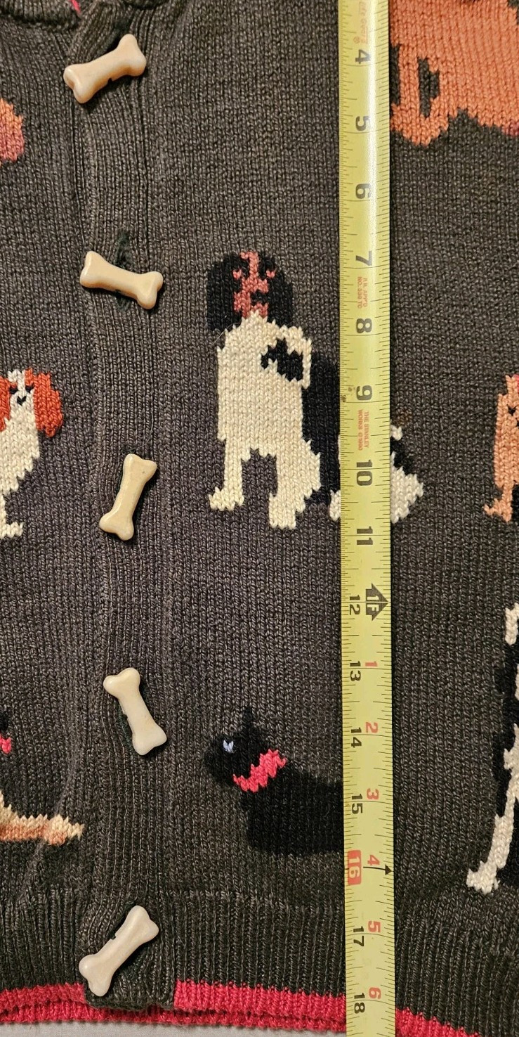Christine Foley Childrens Dog Sweater Cardigan Bone Buttons 7/8 VGC Green Multi