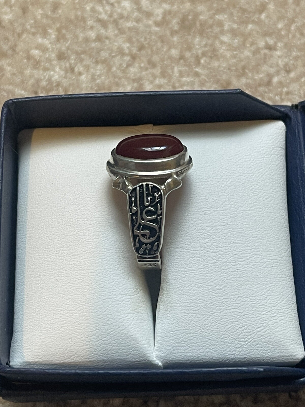 как выглядит Men Ring STERLING SILVER 925 Natural Red AGATE AQEEQ Size 10.5 фото