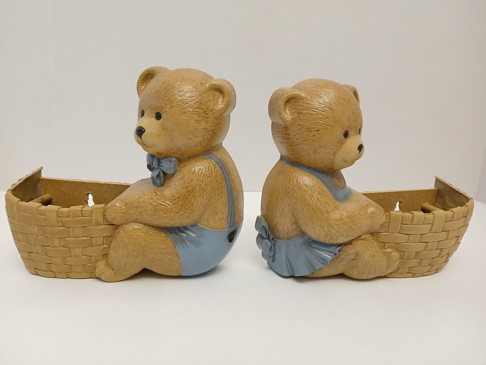 как выглядит Burwood Wall Pocket Hanging Planter Boy Girl Teddy Bear Vintage Nursery Decor фото