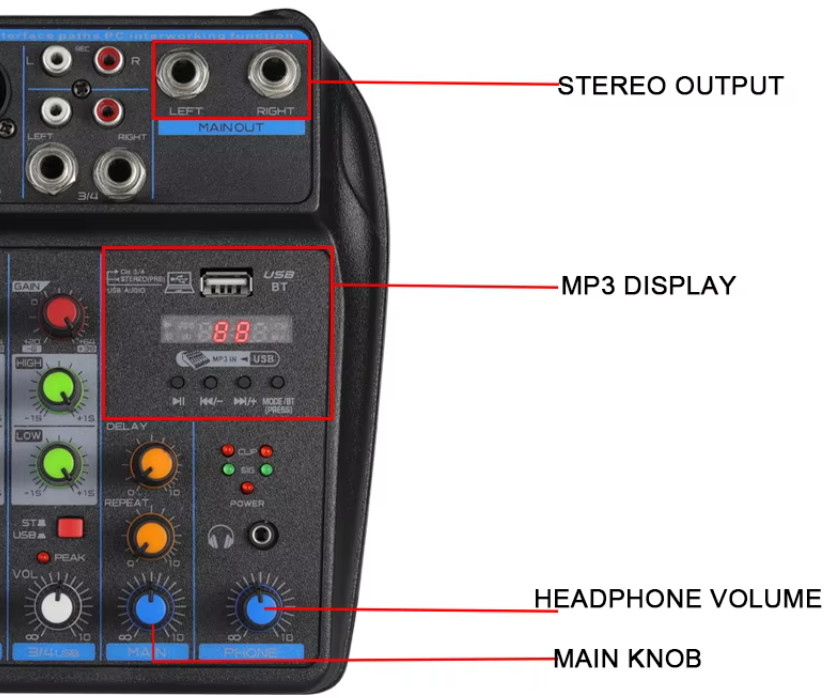 4-CHANNEL MINI MIXER with BLUETOOTH EFFECTS MP3 EQUALIZERS for DJ STUDIO STAGE