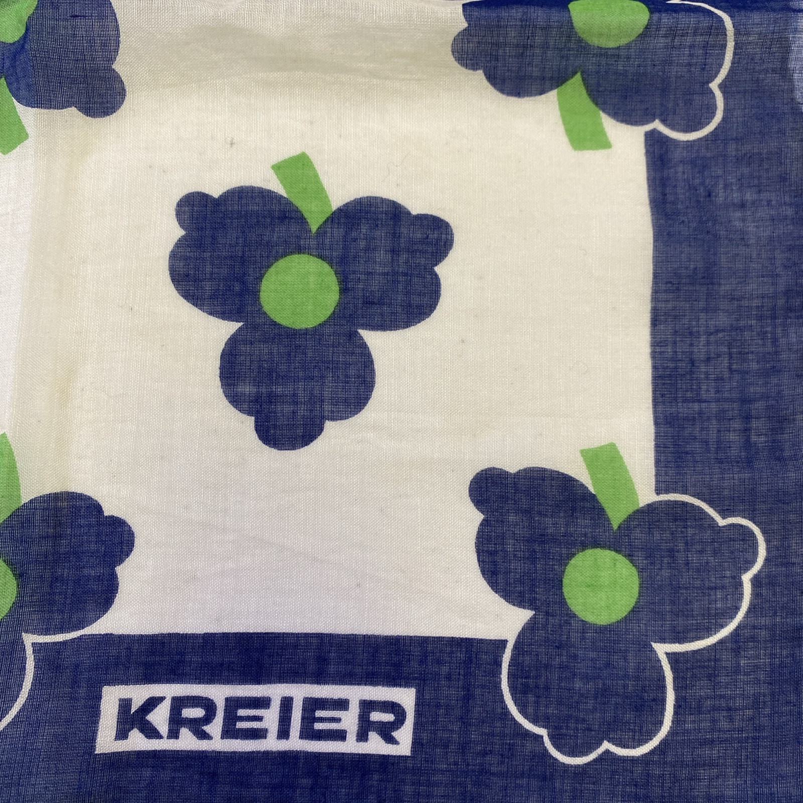 Kreier Cotton Scarf Blue, Green, White - Mod - 26 inches x 27 inches