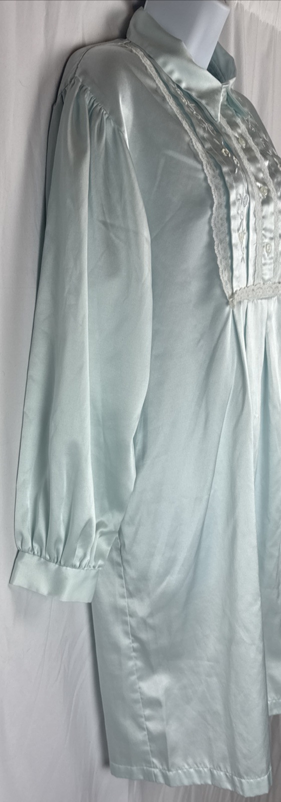 как выглядит Barbizon Satin Flannel Lined Nightgown Size MD Pale Blue Eyelet Florals Midi фото