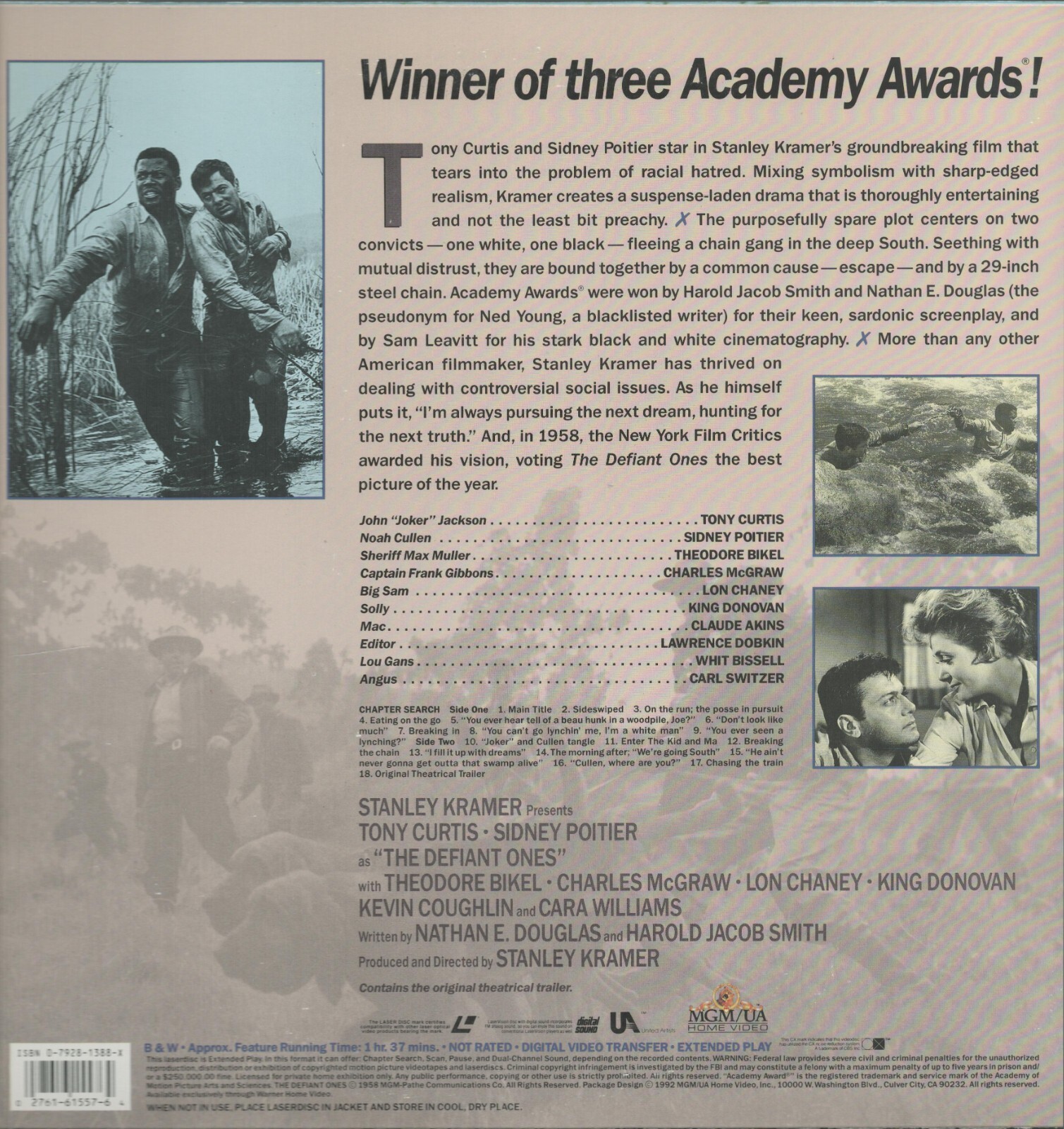 The Defiant Ones Laserdisc Tony Curtis / Sidney Poitier - 1992 Digital Sound