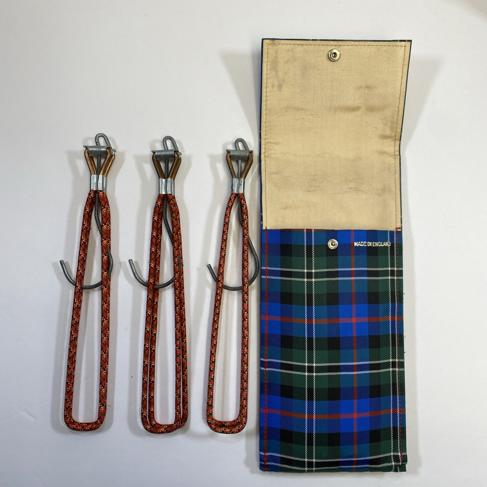 как выглядит Collectible Vintage St. George antique folding metal hangers 3 in travel case фото