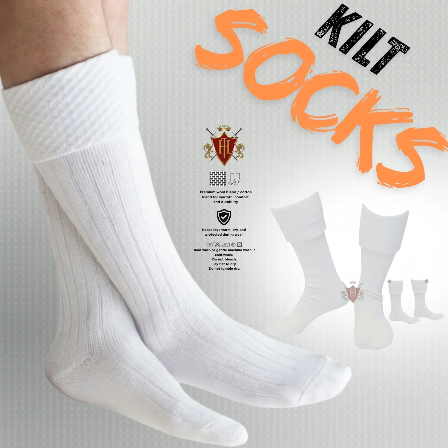 Diamond Cuff Men White Scottish Highland Wear Kilt Hose Socks