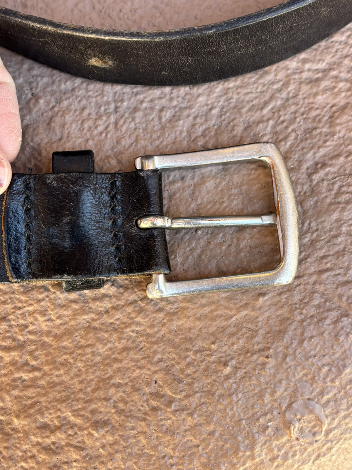 как выглядит Black Leather Belt With Silver Colored Buckle Plain фото