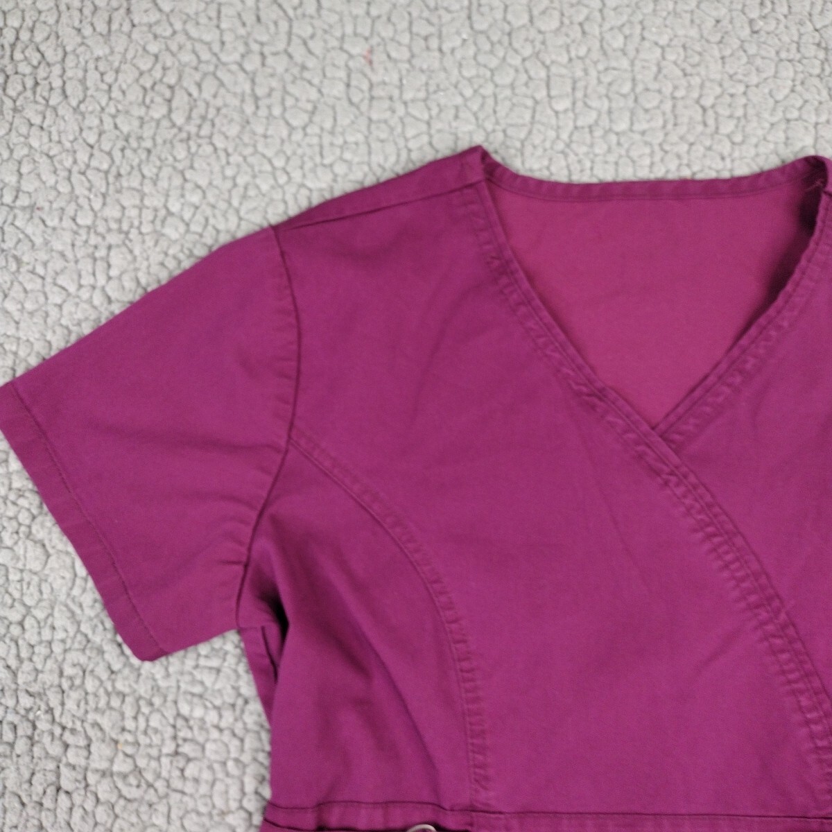 как выглядит Cherokee Luxe Scrub Top Womens Purple Pockets V-Neck фото