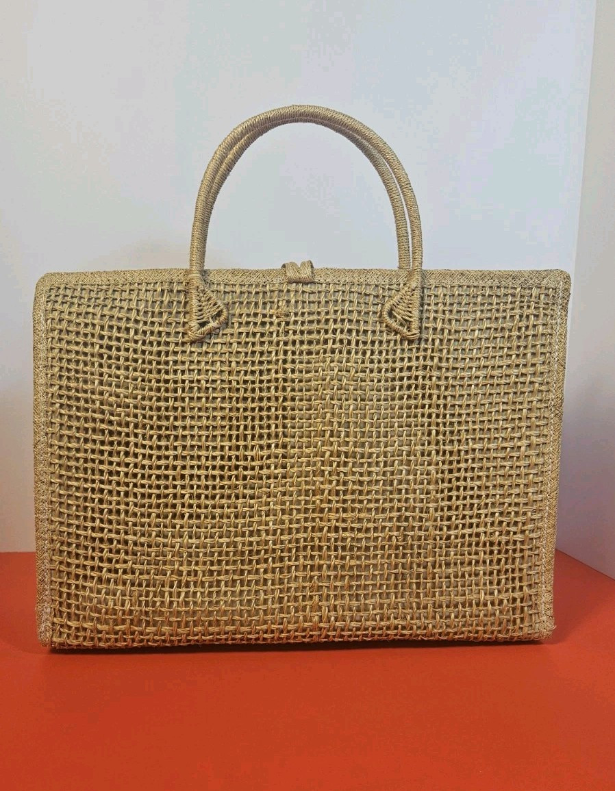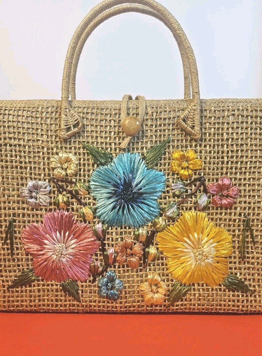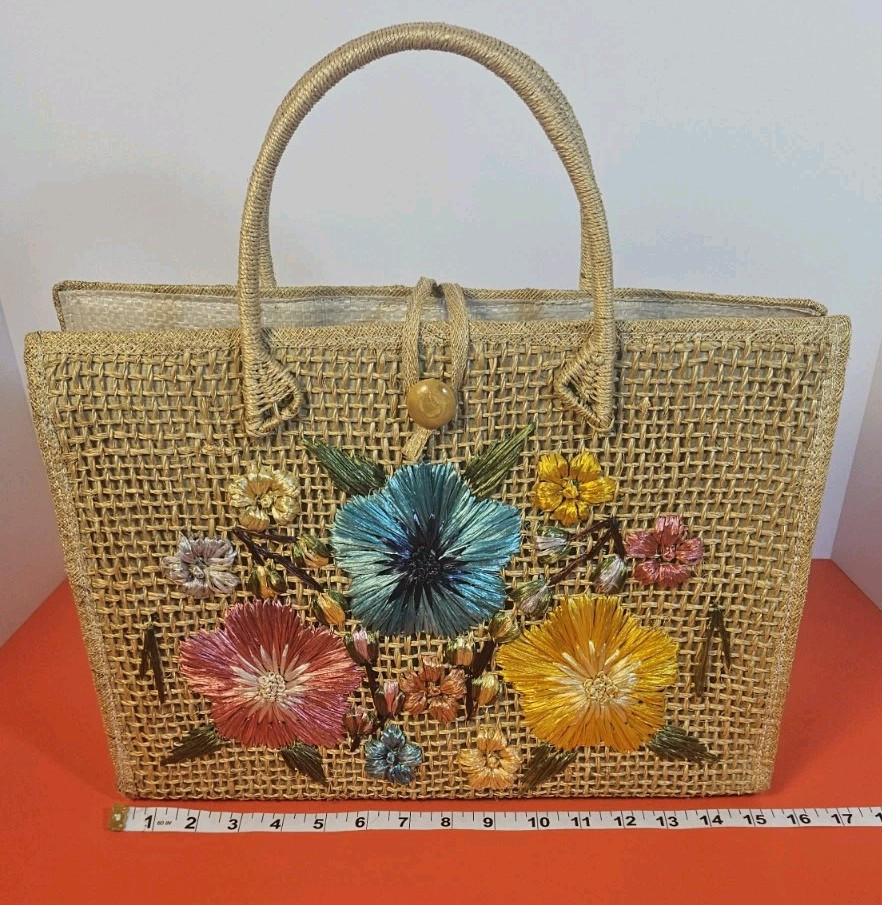 как выглядит Vintage Straw Bag Rattan Woven Floral Purse Tote By Cabana фото