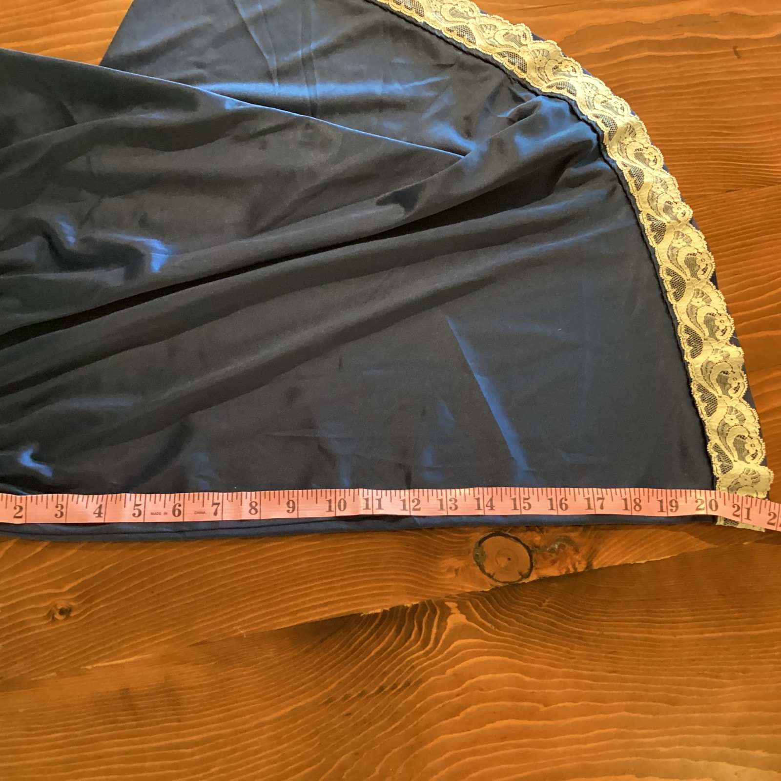 как выглядит Vintage VANITY FAIR Half Slip Nylon Accent Hem Dark Blue With White Lace Med фото