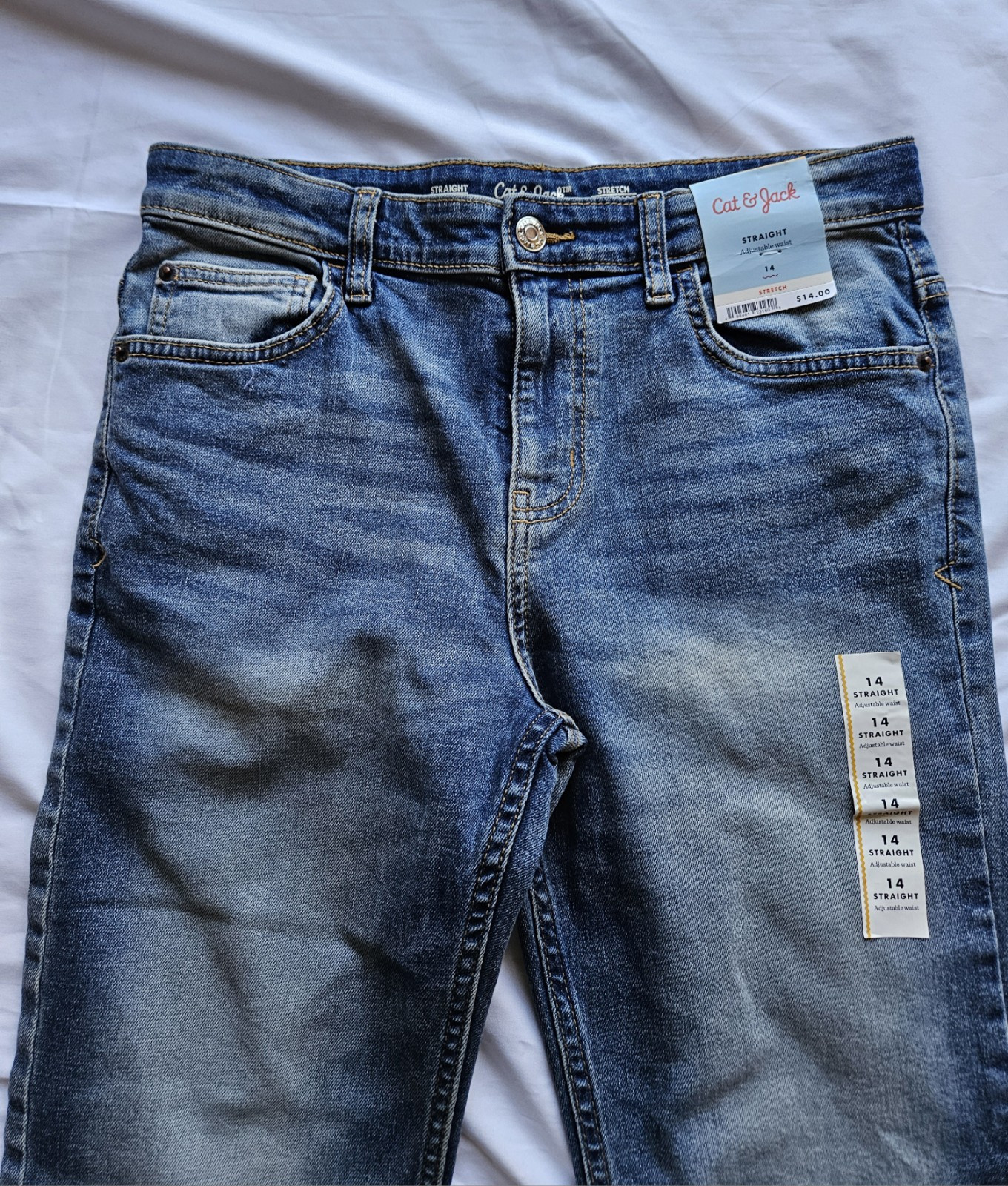 как выглядит Cat Jack Boys Straight Fit Stretch Jeans Adjustable Waist - Size 14 MD Wash фото