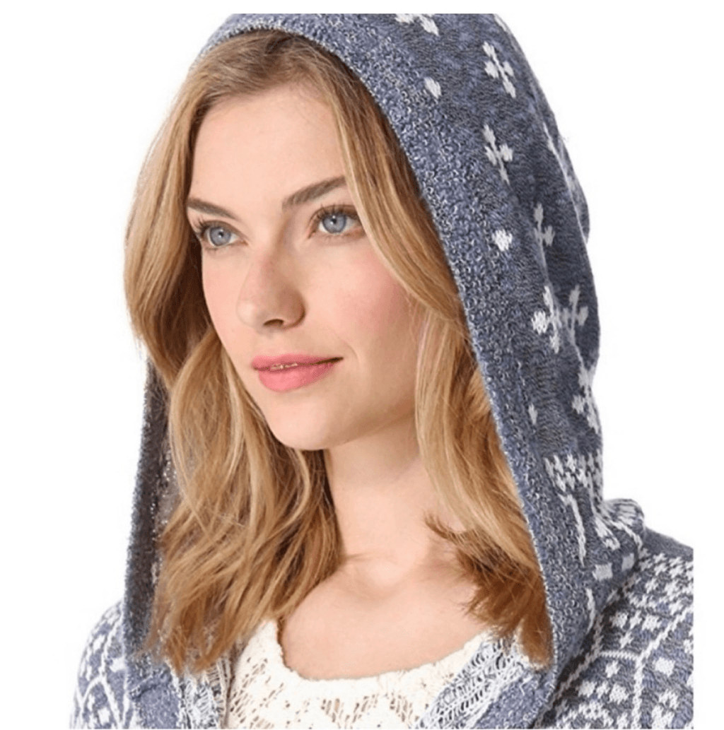 Free People Size M Bandana Tapestry Knit Duster Sweater Red Blue Hooded Cardi