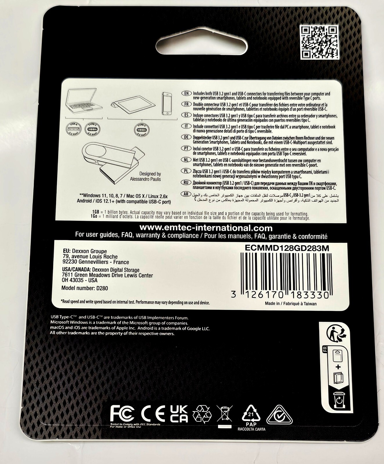 Flash Drive EMTEC Dual Go USB Type-A Type-C 128 GB Phone Tablet NEW