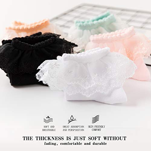 Women Ankle Socks,Lace Ruffle Frilly Cotton Socks Trim 5-8 White-1 Pairs