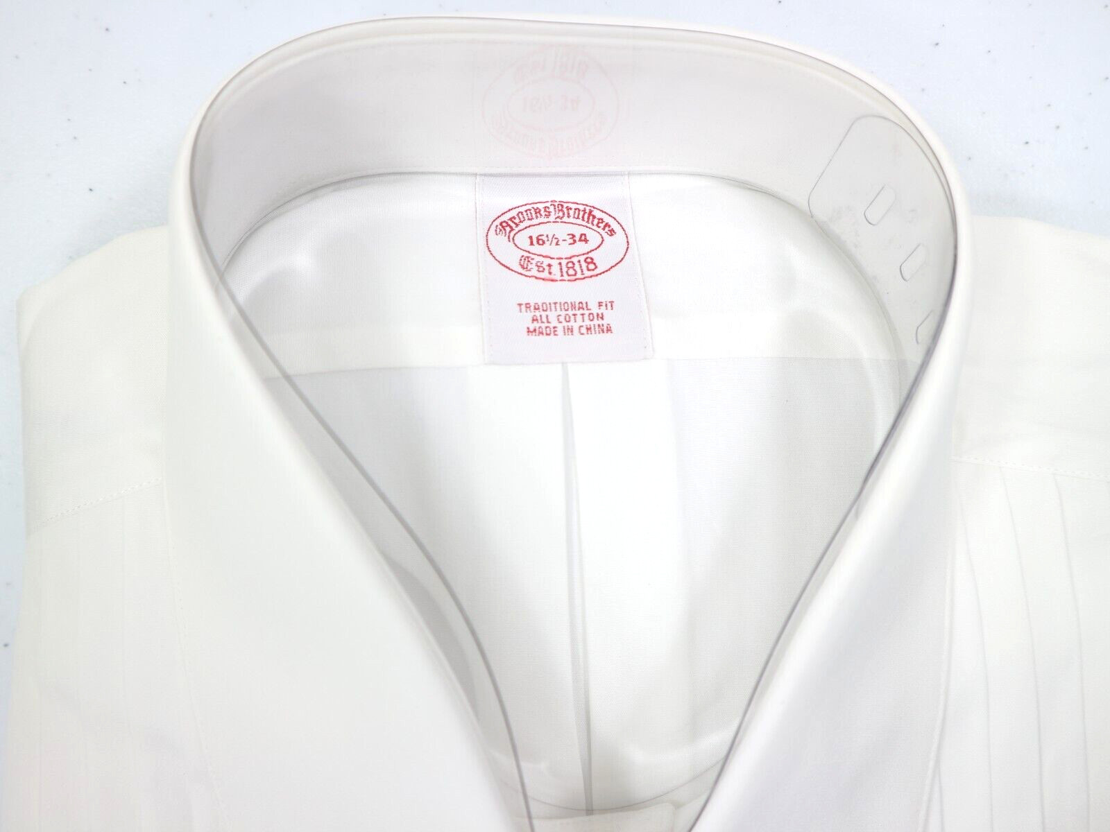 Brooks Brothers Traditional Fit All Cotton 16.5-34 10-Pleat Tuxedo Shirt White
