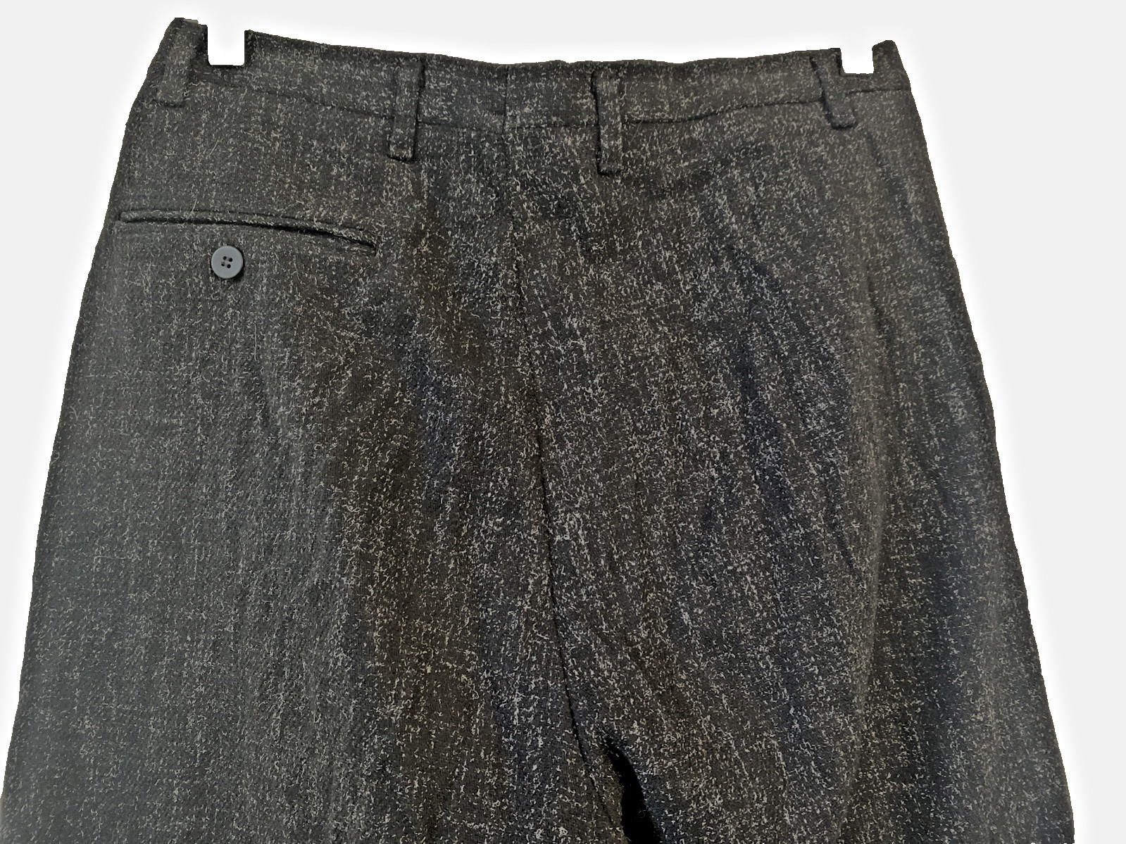 как выглядит VTG 80s Black-White Wool Tweed Atomic Fleck Pleated Hollywood Trousers Made USA фото